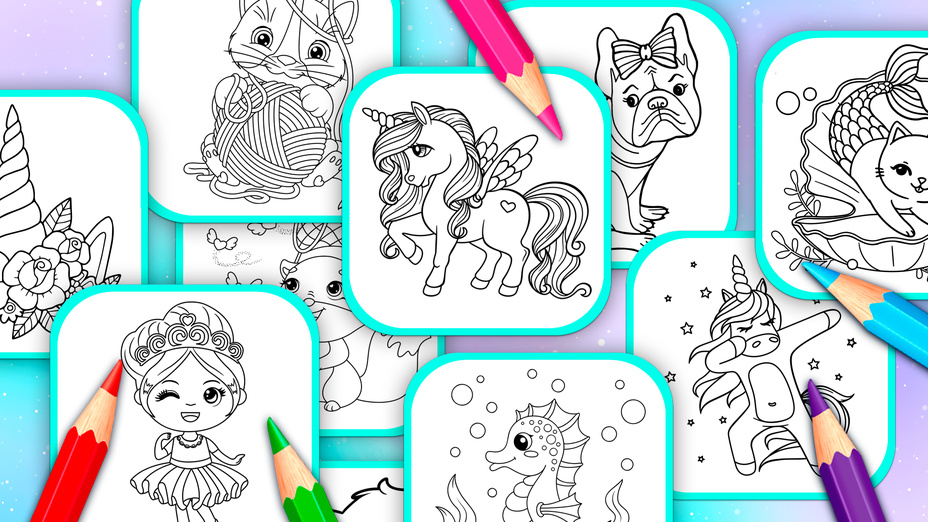 Możesz pokolorować różne magiczne i urocze stworzenia, w tym wróżki, syreny, jednorożce, koty i psy.