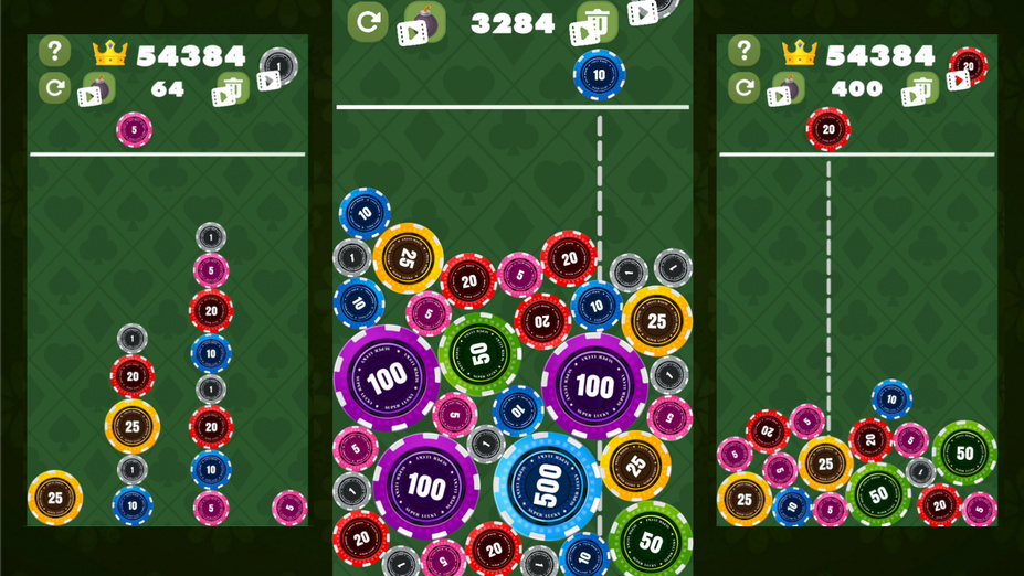 Połącz żetony do pokera to doświadczenie dla jednego gracza, ale możesz rywalizować z przyjaciółmi, porównując wyniki w tabelach wyników.