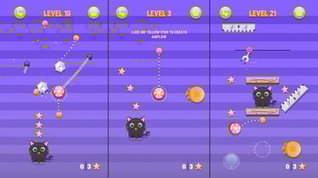 Gra Cut For Cat 2 jest wyjątkowo intuicyjna. Na telefonie po prostu dotknij ekranu, aby przelecieć do przeszkody, a na komputerze użyj myszki, aby przecinać liny, które odpowiadają za ruch obiektów w grze. Planuj swoje ruchy mądrze, aby pomóc kotu zjeść jak najwięcej cukierków, jednocześnie unikając przeszkód!