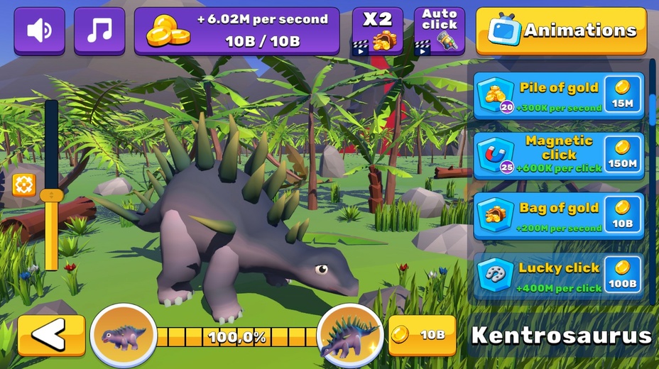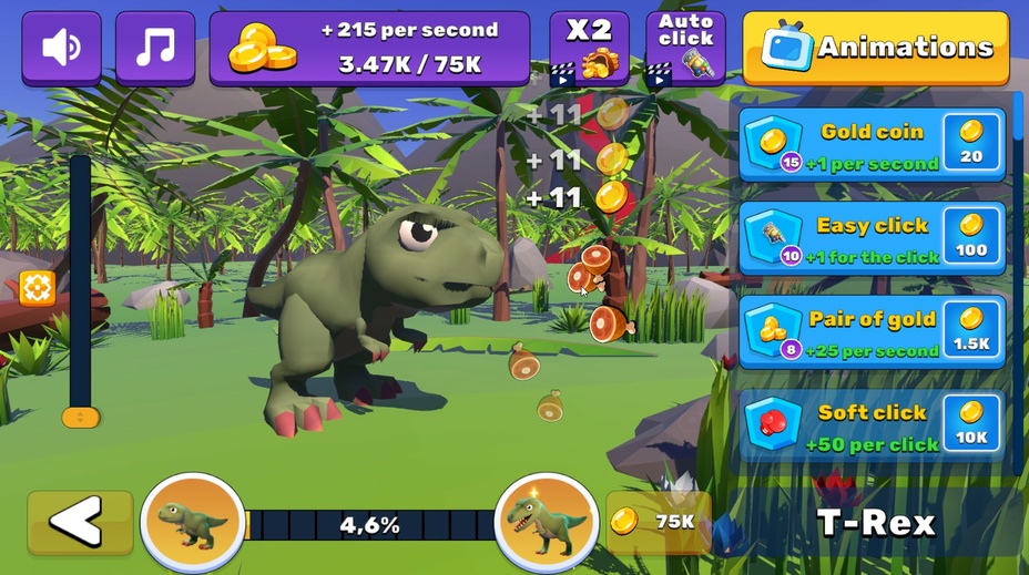 Sterowanie Dinosaur World: Clicker jest intuicyjne i zaprojektowane z myślą o płynnej rozgrywce na urządzeniach mobilnych. Wystarczy dotknąć lub kliknąć, aby wejść w interakcję z dinozaurami i zarządzać parkiem. Interfejs pozwala użytkownikom bez wysiłku poruszać się po różnych sekcjach parku, zapewniając płynne wrażenia z gry.