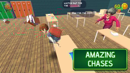 W Escape From Scary Teacher gracze zmierzą się z różnymi wciągającymi wyzwaniami, w tym skomplikowanym torem przeszkód, dynamicznymi eskapadami i groźnymi falami lawy. Przemierzając każdy poziom, napotkasz epickie bitwy z bossami i sprytnie zaprojektowane ustawienia, które wymagają wnikliwej obserwacji i zręcznej rozgrywki. Czarująca grafika i projekt dźwięku tworzą urzekającą przygodę ucieczki!