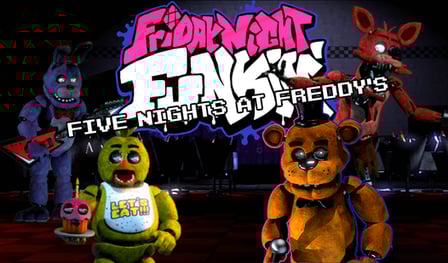 FNF Five Nights At Freddy to gra cross-over, która łączy elementy horroru Five Nights at Freddy 's z opartą na rytmie rozgrywką Friday Night Funkin'. Gracze oddają się muzycznym bitwom z animatronicznymi wrogami w środowisku o tematyce horroru.