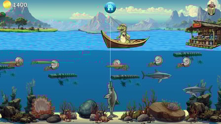 Użyj myszy, aby kontrolować wędkę. Kliknij, aby zarzucić żyłkę, a następnie kliknij ponownie, gdy poczujesz szarpnięcie, aby wyciągnąć rybę. Jeśli korzystasz z urządzenia mobilnego, dotknij ekranu, aby zarzucić żyłkę, i dotknij, gdy złapiesz rybę, aby ją wyciągnąć. Im szybciej zareagujesz, tym lepsze będą Twoje szanse na złapanie rzadkich prehistorycznych stworzeń!