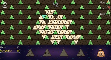 Aby grać w Geomino na swoim komputerze, najpierw najedź myszką na żeton, który chcesz umieścić, a następnie kliknij, aby go umieścić na planszy. Na swoim telefonie, dotknij żetonu i przeciągnij go do miejsca, w którym chcesz go umieścić, a następnie puść, aby go położyć. Każde udane umieszczenie przyznaje nowy żeton, chyba że woreczek jest pusty – gra płynie bez przeszkód!