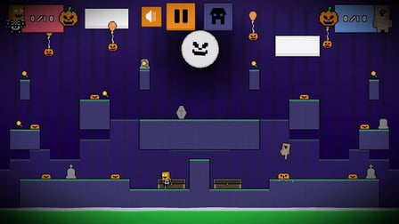 Rozpoczęcie gry w Graveyard Wars jest proste. Wybierz swoją postać i wkrótce wskakuj do cmentarza. Użyj klawiszy 'WASD' dla gracza pierwszego i 'klawiszy strzałek' dla gracza drugiego, aby poruszać się po cmentarzu. Celem jest zebranie 10 dyń szybciej niż przeciwnik. Każda zebrana dynia przybliża Cię do zwycięstwa, więc nie zapomnij obserwować postępów swojego przeciwnika i dostosować swoją strategię.