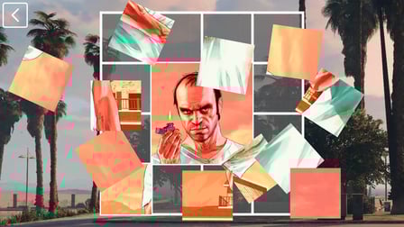 GTA V Puzzles oferuje różnorodne obrazy z gry, dzięki czemu każdy fan znajdzie coś dla siebie. Wybieraj spośród pełnych akcji scen, krajobrazów i obrazów postaci.