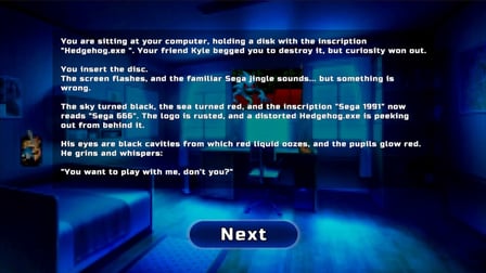 Wejdź do świata grozy z Hedgehog.EXE: Damned disk, interaktywną grą tekstową, która mistrzowsko łączy psychologiczne dreszcze z niespodziewanymi straszakami. Jako oddany fan Hedgehog, twoja przygoda zaczyna się, gdy otrzymujesz tajemniczą płytę CD od przyjaciela, oznaczoną intrygująco jako Hedgehog.exe. Pomimo ostrzeżeń o niebezpieczeństwie, ciekawość zmusza naszego bohatera do uruchomienia enigmatycznej gry, przenosząc go do koszmarnej rzeczywistości pełnej zniekształconych lokalizacji i przerażającej przemiany ukochanego Hedgehog w demoniczną istotę.