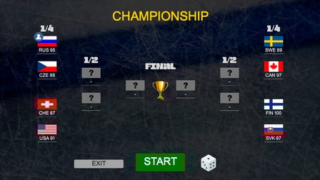 - Wybierz swój zespół z różnych krajów, zwracając uwagę na ich oceny IIHF, KHL lub NHL.