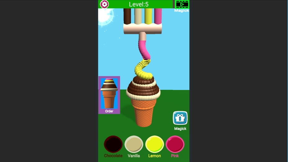- Przeciągnij i upuść: Połącz smaki i podawaj lody