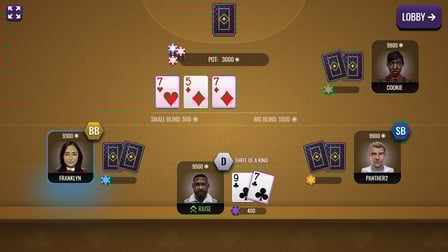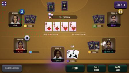 - Kontynuuj przez rundy, starając się mieć najlepszą rękę lub skutecznie blefując swoich przeciwników.
