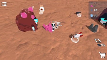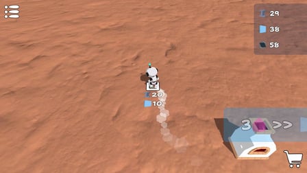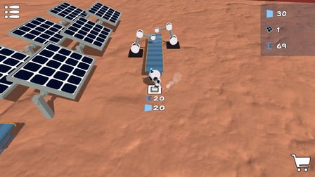 Rozpocznij swoją marsjańską przygodę, prowadząc swoją postać, Roba, przez ruggedne ukształtowanie terenu. Wykorzystaj joystick do płynnej nawigacji, lub jeśli grasz na klawiaturze, skorzystaj z WASD lub strzałek do poruszania się. Zbliż się do zasobów, aby rozpocząć wydobycie, a następnie udaj się do zakładów produkcyjnych, aby je przetworzyć. Inwestuj w budowę, odwiedzając obszar budowy, i skutecznie zarządzaj swoimi zasobami w magazynie. Dla zaawansowanej logistyki wejdź w interakcję z panelem kontrolnym asystenta transportu.