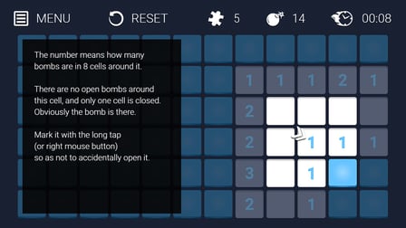 - Kontynuuj otwieranie komórek na podstawie wskazówek dostarczonych przez liczby, aż oczyścisz pole lub trafisz bombę.