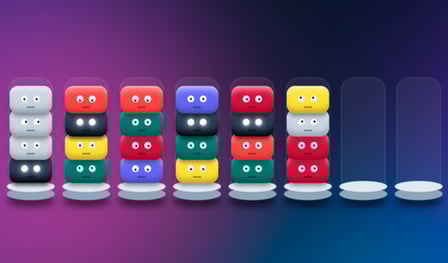 Dotknij kolby. Wybierz górnego potwora. Dotknij innej kolby. Upuść go tam. Zasada: Przenoś tylko do pustej kolby lub na potwora tego samego koloru. Układaj poprawnie. Ukończ poziom. Powtarzaj to na setkach łamigłówek.