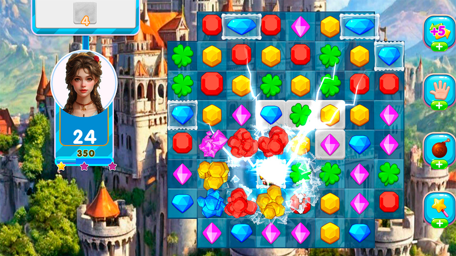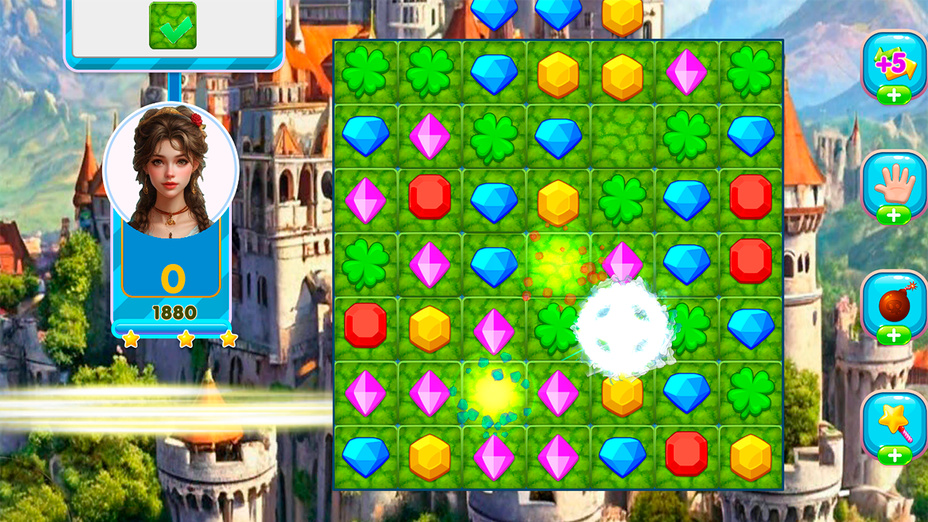 Gra Mystery Of The Castle trzy z rzędu jest prosta. Po prostu przesuń klejnoty na swoim telefon lub kliknij myszą na komputer aby utworzyć mecze trzech lub więcej identycznych klejnotów. Każdy poziom oferuje różne wyzwania, od zbierania niektórych klejnotów po osiąganie wysokich wyników w ograniczonych ruchach. Zanurz się w magicznej atmosferze, rozwiązując zagadki, aby odblokować nowe, tętniące życiem obszary!