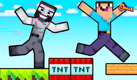 Noob vs Pro to ekscytująca gra zręcznościowa, w której możesz wykonywać sztuczki parkour i stawić czoła ekscytującym wyzwaniom. Zanurz się w urzekającym uniwersum Minecrafta i przeżyj przygody nooba, który został zamieniony w Gigachada przez Herobrine po tym, jak został wydalony ze szkoły potworów. Graj online za darmo bez kłopotów z pobieraniem i zanurz się w świecie pełnym niekończących się emocji i wizualnych smakołyków. Pokonuj próby, poruszaj się po tętniącej życiem wiosce i zbieraj cenne diamenty, odblokowując nowe skórki i podnosząc wrażenia z gry. Ta gra jest idealna dla nastolatków i każdego, kto szuka zabawnego i wciągającego timekillera, który trenuje twój mózg i testuje Twoją zwinność.
