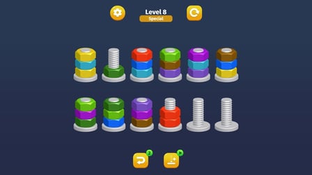 Przygotuj się na doskonalenie swoich umiejętności logicznych za pomocą nakrętek i śrub: Sortuj Puzzle! Gra jest łatwa do zdobycia, ale trudna do opanowania, dzięki czemu jest odpowiednia dla graczy na wszystkich poziomach. Wykonaj następujące kroki, aby rozpocząć sortowanie i rozwiązywanie zagadek jak profesjonalista.