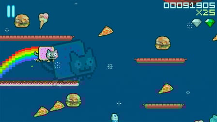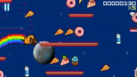 Dołącz do zabawy w Nyan Cat Classic, pełnej kolorowych przygód, gdzie wcielasz się w tytułowego kota i biegniesz przez nieskończoną przestrzeń! W tej grze typu platformówka możesz bez końca zbierać różnorodne smakołyki oraz bonusy, zdobywając jak najwięcej punktów! Zachwyć się bogatym zborem platform, przeciwników, skórek i osiągnięć, które utrzymają Cię w stanie ekscytacji na długi czas!