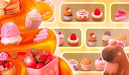 Nowe desery wciąż pojawiają się z koszyka. Jeśli Twoje półki zapełnią się przed wyczyszczeniem wystarczającej liczby dopasowań, to koniec gry na tę rundę. Sztuczka? Priorytetowo traktuj grupy strategicznie. Czasami musisz „przygotować” dopasowania, przesuwając wcześniej blokujące przedmioty — tam właśnie odnajdziesz głębię zagadki.