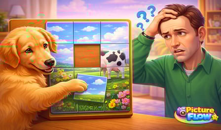 Klikaj na kawałki obrazu rozrzucone po ekranie. Przeciągnij każdy fragment na jego właściwe miejsce. Dopasuj krawędzie. Połącz elementy ze sobą. Obraz wyłania się w miarę Twojej pracy. Brak presji czasu. Brak kar. Czysta logika przestrzennych łamigłówek.