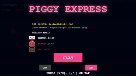Przygotuj się na przygodę jak żadna inna z Piggy Express, ekscytującym arcade runnerze, który przeniesie cię do urzekającego uniwersum pełnego pixelowego uroku. W tej pasjonującej grze online, stajesz się najszybszym i najodważniejszym doręczycielem poczty w galaktyce. Twoje zadanie? Przemierzanie niebezpiecznych przeszkód podczas dostarczania cennych listów i paczek w trzech dynamicznych światach.