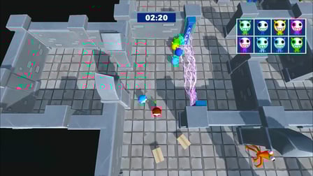 - Przeciwnicy: Uważaj na przeciwników, którzy mogą zabrać twoje kostki, jeśli nie ukryjesz się pod pudełkiem.