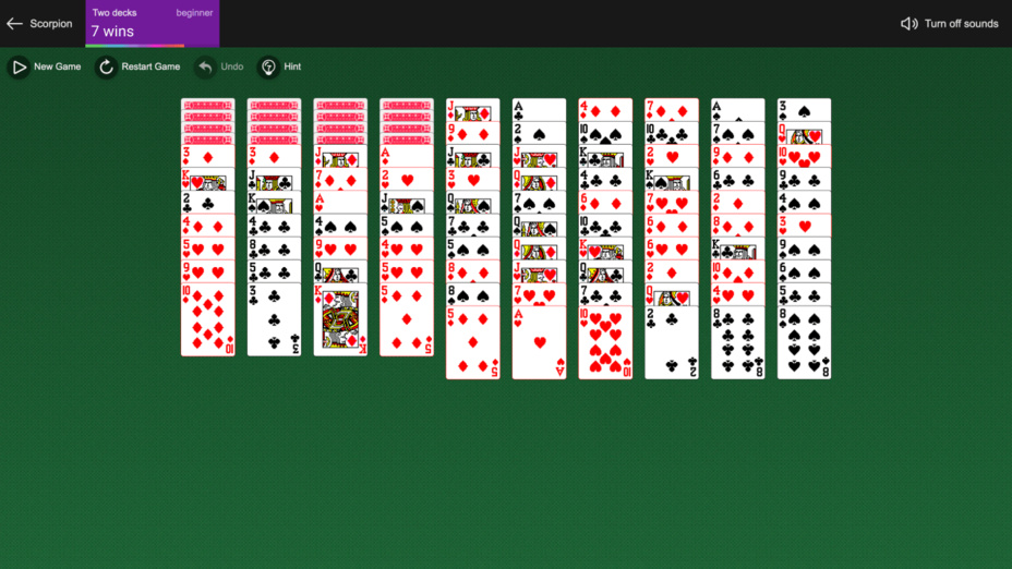 W Scorpion Solitaire, twoim celem jest zbudowanie czterech sekwencji kart od króla do asa w porządku malejącym w tym samym kolorze. Gra rozpoczyna się od tableau 49 kart ułożonych w siedmiu kolumnach, przy czym pierwsze trzy kolumny zawierają trzy zakryte karty. Pozostałe cztery kolumny są w pełni odsłonięte. Ten układ przedstawia zarówno możliwości, jak i wyzwania podczas poruszania się po grze.
