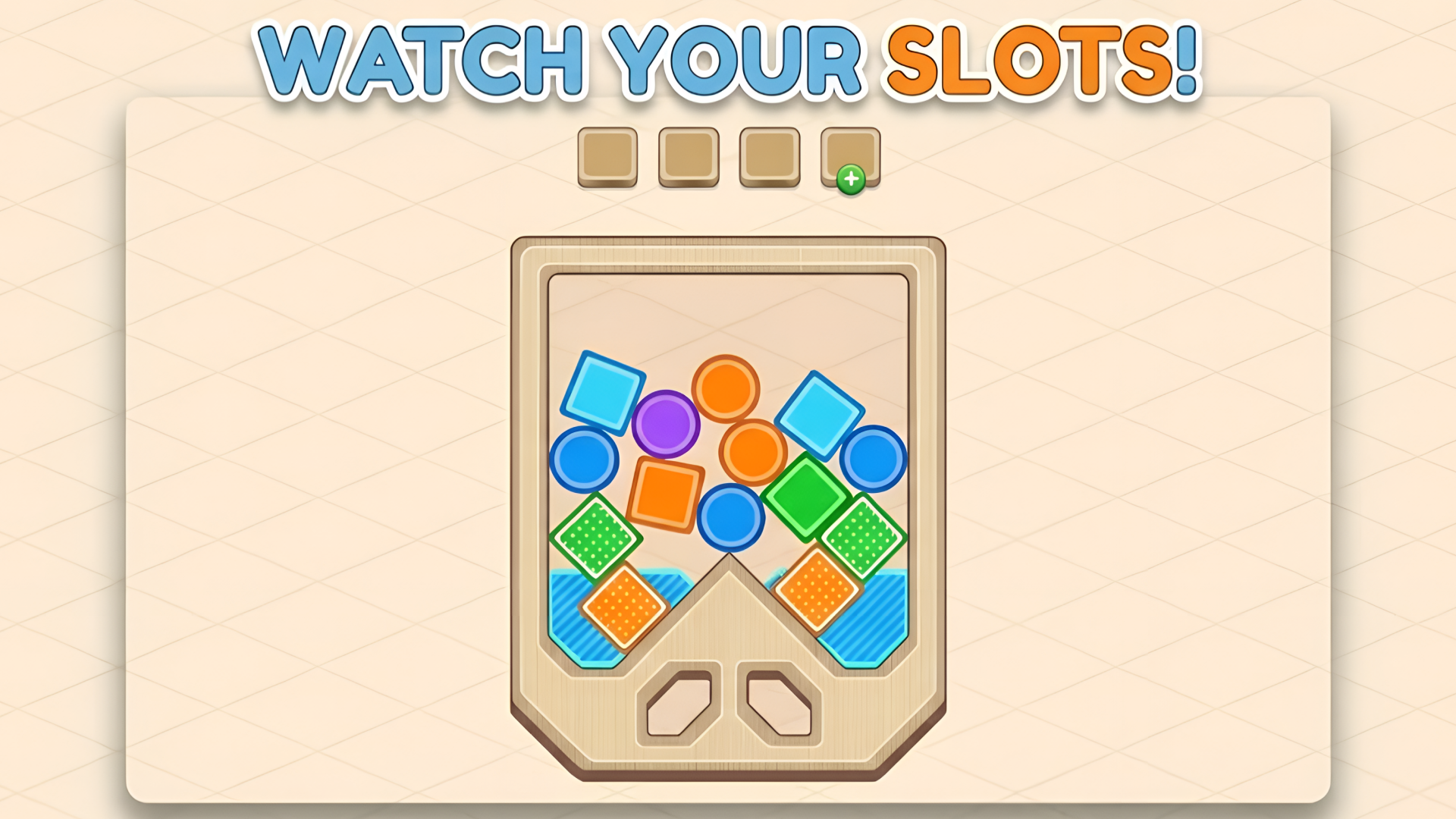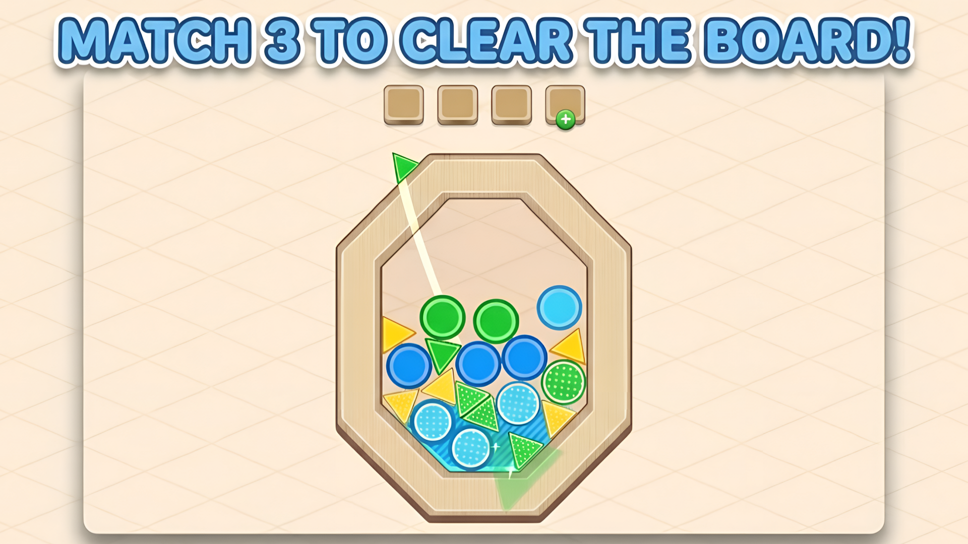 Zbieraj trzy identyczne kształty w swoich slotach, aby zniknęły automatycznie.