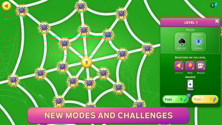 W Spider and Spiderette Solitaire przejmiesz kontrolę nad swoją talią, starając się uporządkować karty w sekwencje, ostatecznie usuwając wszystkie karty ze stołu. Napotkasz szereg trybów gry, w tym tryb pająka, tryb Spiderette, tryb wyzwania i tryb fabularny, z których każdy oferuje unikalne talie i tła do odblokowania. Gracze w każdym wieku mogą cieszyć się tą grą, ponieważ posiada przyjazny dla użytkownika interfejs i wciągającą mechanikę rozgrywki, która jest odpowiednia zarówno dla początkujących, jak i doświadczonych graczy. Dzięki wielu opcjom garnituru i różnym wyzwaniom gra oferuje nieskończoną grywalność i świeże wrażenia za każdym razem, gdy grasz.