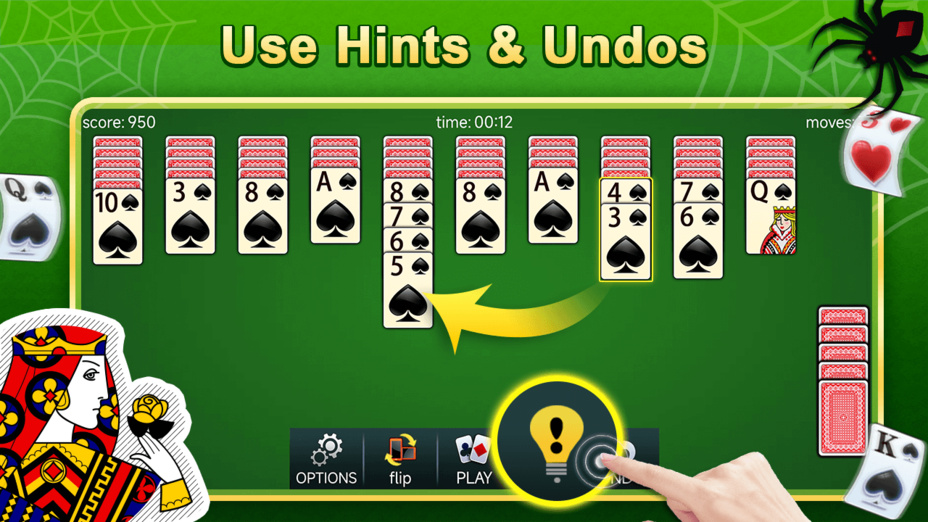 Opanowanie Spider King wymaga strategii i cierpliwości. Zaczynaj od gier z 1 i 2 kolorami, aby zapoznać się z mechaniką. Skup się na jak najszybszym oczyszczaniu kolumn, aby stworzyć więcej miejsca do manewrowania kartami. Zawsze próbuj odkrywać karty zakryte najpierw, ponieważ dają one nowe możliwości ruchu. Strategicznie używaj przycisku cofania, ale nie polegaj na nim zbytnio; to narzędzie do nauki, a nie kula u nogi.