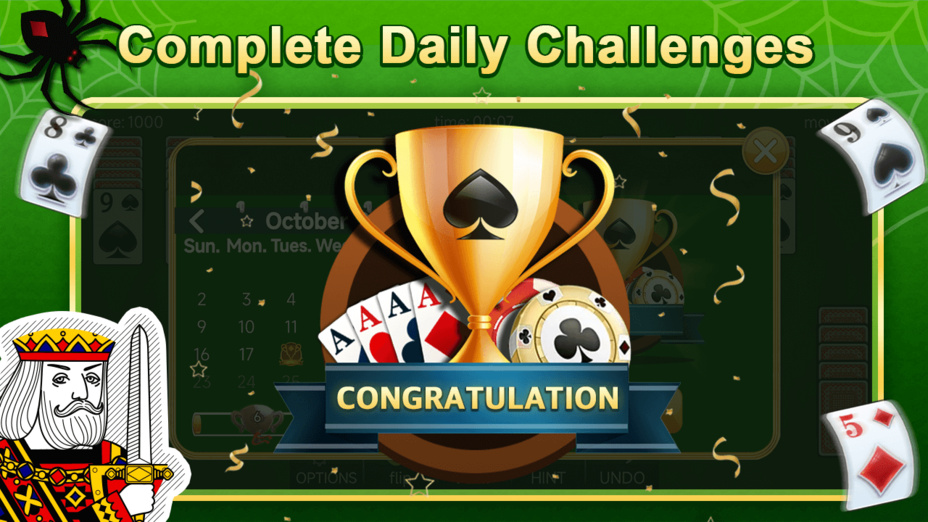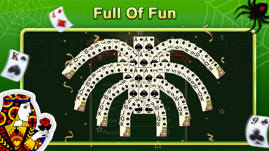 Gra w Pasjansa Spider ma bogatą historię sięgającą lat 40. XX wieku. Początkowo grano w nią fizycznymi kartami, a z czasem przekształciła się w popularną grę cyfrową. Cel pozostaje ten sam: ułożyć karty w porządku malejącym. Spider King przynosi nowoczesny twist do tego klasyka z oszałamiającą animacją i eleganckim interfejsem.