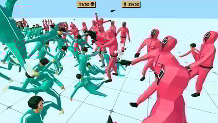 Squid Battle Simulator to ekscytująca, pełna akcji gra strategiczna, która rzuca graczy w świat ekscytujących bitew online. Łącząc elementy minigier i strategii czasu rzeczywistego, ta wieloosobowa gra survivalowa przedstawia zawodnikom ostateczny test przebiegłości i umiejętności. Uczestnicy muszą dowodzić swoją armią unikalnych postaci, w tym osławioną zbrojną ochroną i robotycznymi lalkami-zabójcami, aby wziąć udział w spektakularnych bitwach. Ta darmowa gra oferuje graczom szansę zostania menedżerami, kapitanami i strategami, którzy pracują nad podbiciem wrogów i zwycięstwem przeciwko wrogim siłom.