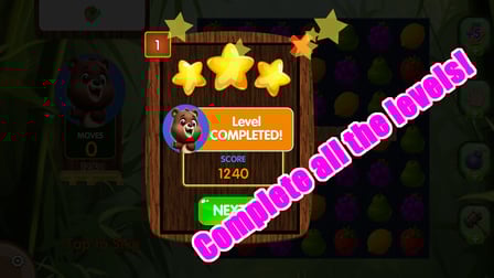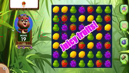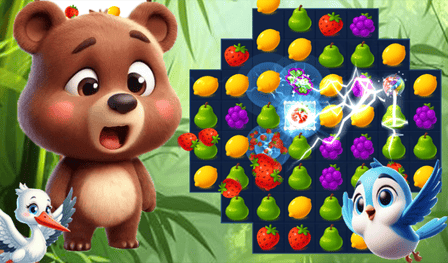 Każdy poziom oferuje unikalne wyzwania, w tym ograniczoną liczbę ruchów i konkretne zadania zbierania owoców, które utrzymują rozgrywkę świeżą i ekscytującą!