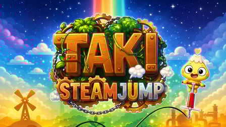 Taki Steamjump to pionierski, pionowy skoczek bez końca, w którym używasz pogo sticka, by wzbijać się w górę przez steampunkowe niebo. Wyobraź sobie, że Doodle Jump spotyka się z wiktoriańską machiną. Twój cel? Wspinać się jak najwyżej, unikając upadków, zbierając kryształy pryzmowe i aktywując power-upy, takie jak Wodne Bąbelki i Kryształy Ochronne. Proste? Tak! Szybkie? Na pewno! Idealne na podnoszenie swojego rekordu w trakcie przerw.