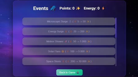 Wyrusz w epicką podróż przez Kosmiczny czas w Ewolucja wszechświata! To wolny oparta na przeglądarce gra typu clicker zaprasza Cię do podążania ścieżką ewolucji, w której zaczniesz jako maleńka bakteria i wyrosniesz na Wszechmocnego galaktycznego Boga. Za każdym kliknięciem zbierzesz zasoby, które pozwolą Ci ulepszać i odblokowywać nowe etapy ewolucji, zwiększając Twoje możliwości i rozszerzając wszechświat. Zanurz się w tej ekscytującej gameplay, przeznaczony dla entuzjastów, którzy kochają strategię i postęp!