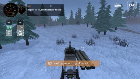 Twoje główne cele to załadunek kłód, dostarczenie ich do bazy oraz zarządzanie stanem pojazdu podczas poruszania się po trudnych terenach.