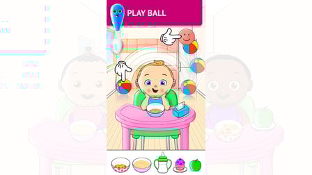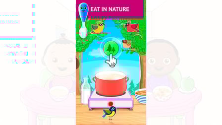- Sürükle ve Bırak: Bebek karakterini beslemek için kaşığı hareket ettirin.