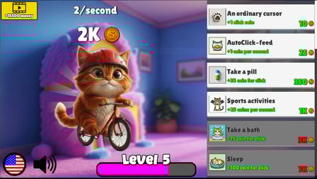 Hızla ilerlemek için kaynakları toplamayı ve kedi yeteneklerinizi geliştirmeyi unutmayın. Her tıklamada daha fazlasını öğrenin ve kedinize daha iyi bir hayat sunmanın yollarını keşfedin!
