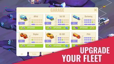 Araçlarımı nasıl yükseltebilirim? Filonuzdaki araçlara tıklayıp, mevcut kaynakları kullanarak yükseltmeler yapabilirsiniz, bu da performanslarını artırır.