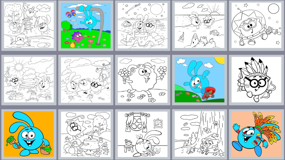 - Renklendirmek için çok çeşitli Smeshariki karakterleri