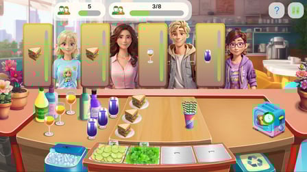 Kafenizde gezinebilmek için fare veya dokunmatik ekranı kullanın. Malzemeleri seçmek, karıştırmak ve misafirlerinize servis etmek için tıklayın veya dokunun. Her yemeğin zamanında ve mükemmel bir şekilde sunulmasını sağlamak için sipariş gereksinimlerine ve zamanlayıcıya dikkat edin.