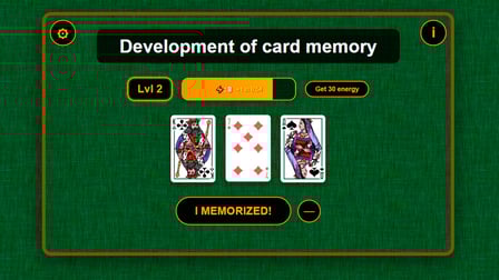 Oyun, bir bilgisayar veya mobil cihazda oynanabilir. Her seviyeden sonra tekrar edebileceğiniz farklı kart türleri mevcuttur. Kartları seçin ve uygun olanları eşleştirmeye çalışın. Bu, kart hafızanızın gelişimi için oldukça faydalıdır.