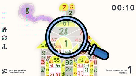 Mobilde, parmaklarınızı kullanarak sayılara dokunun. Bilgisayarda her bulduğunuz sayıya fare ile tıklayın. "Kolay" modunda, seçilen sayılar kaybolur, kalan rakamlar için yer açar.