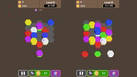 Hexa Sorting, eğlenceli bir ortamda strateji ve renk eşleştirmesini benzersiz bir şekilde harmanlayarak hem zihin aktivitesini hem de eğlenceyi teşvik eder!