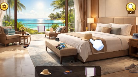 Hotel Tropicana, tropik bir adanın büyüsünü hissetmenizi sağlayan ücretsiz bir gizli nesne oyunudur. Tatil otelinin baş asistanı rolüne girin ve dünyanın dört bir yanından gelen misafirlerin unuttuğu nesneleri bulmak için heyecan verici bir yolculuğa çıkın. Oyun, lüks otelin odalarından havuza, plajdan lobiye kadar çeşitli konumlarda geçmektedir ve her bir yer, kendi içinde farklı oyun deneyimleri sunuyor.