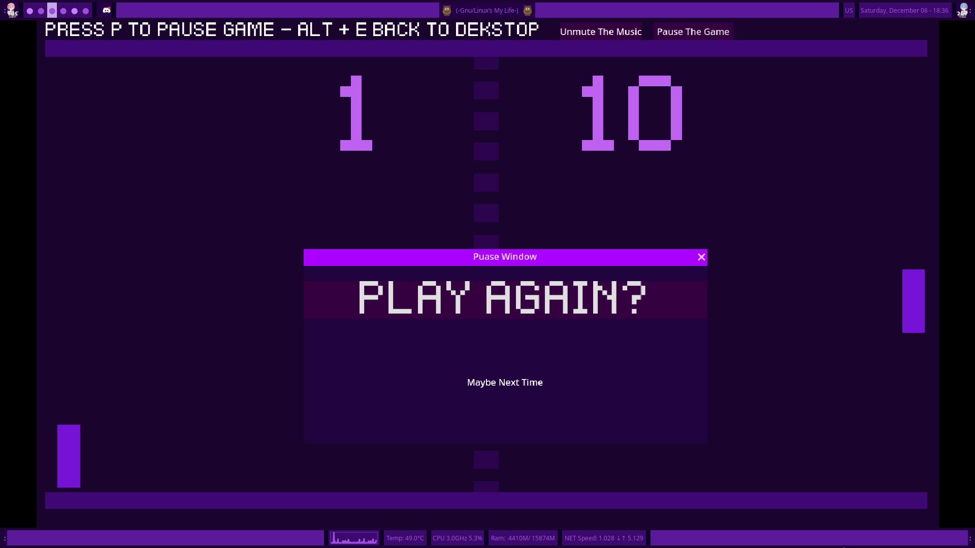 Geçmişin basitliği ile modern teknolojinin rahatlığını birleştiren It's Just Classic Pong nostaljik dünyasına dalın. Bu zamansız klasik, hem telefonunuzda hem de bilgisayarınızda keyifle oynayabileceğiniz ücretsiz çevrimiçi bir deneyim sunuyor. Basit ama zorlu oynanışıyla her yaştan oyuncuya saatler boyunca eğlence ve heyecan vaat ediyor.