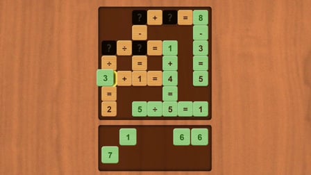 Matematik maceranıza, havuzdan sayı tahtalarını seçerek başlayın ve bunları tahtanın boş alanlarına sürükleyin. Her denklem yatay veya dikey olarak tamamlanabilir, bu nedenle hepsinin geçerli olduğundan emin olun. Tahtaları kolayca harekete geçirmek için farenizi veya dokunmatik kontrollerinizi kullanın. Amaç, tüm ızgarayı doğru bir şekilde doldurarak oyunu kazanmaktır.