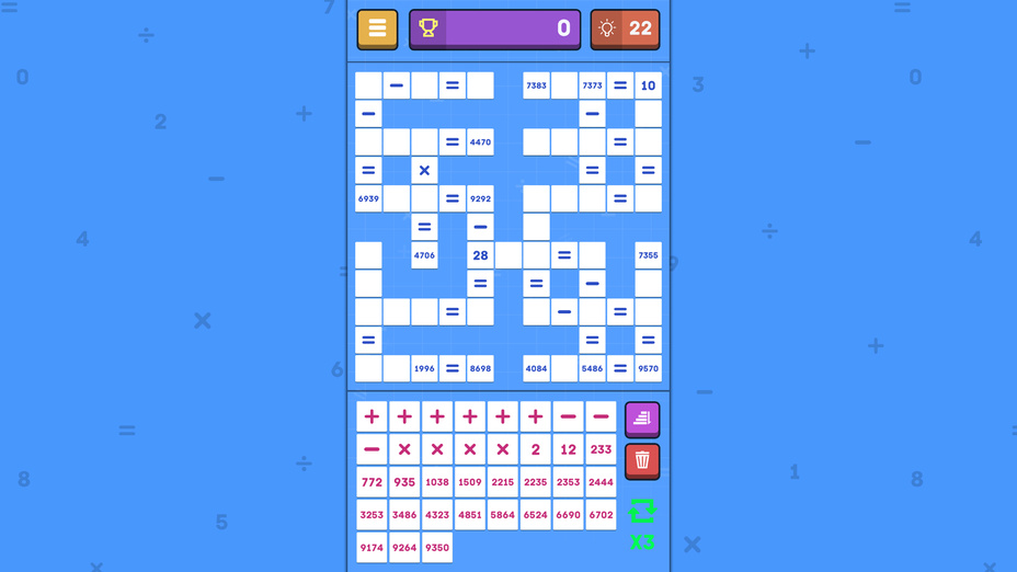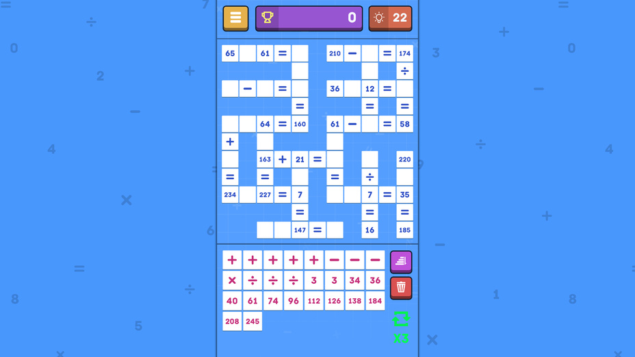 Matematiksel Bulmacaya başlamak kolaydır. İlk olarak, tercih ettiğiniz zorluk seviyesini seçin. Ardından, aritmetik işaretlerin görünür olmasını isteyip istemediğinize karar verin. Verilen matematiksel denklemleri karşılayan doğru sayılarla bulmaca ızgarasını doldurun. Arcade modunda, derecelendirme puanları kazanmak ve tamamlanan her bulmacadan sonra zorluk seviyesini artırmak için aşamaları tamamlayın.