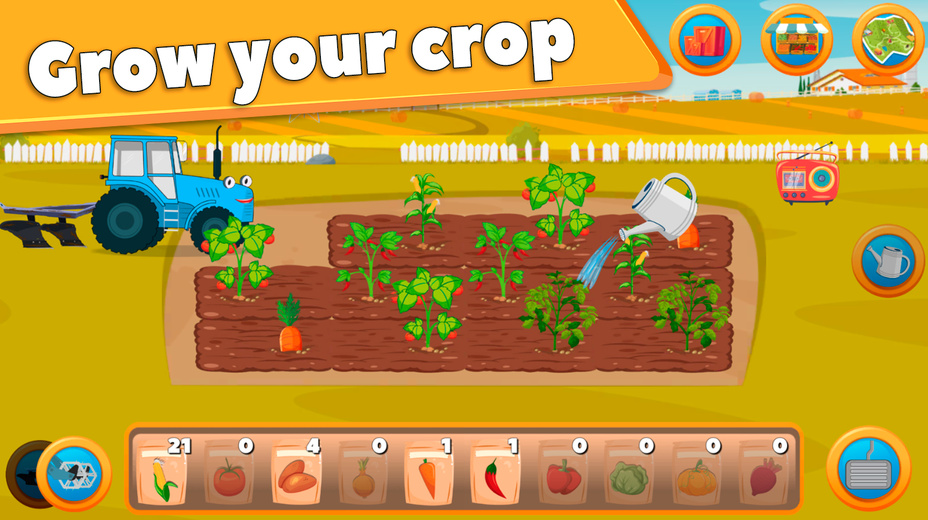 Birincil hedefleriniz arasında mahsul dikmek, hasat etmek, ürünlerinizi kar için satmak ve yeni özelliklerin kilidini açmak ve verimliliği artırmak için çiftliğinizi yükseltmek yer alır.