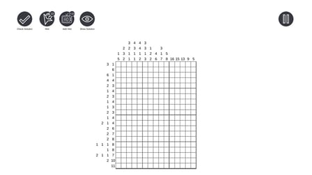 Boş hücreleri seçmek ve onları sayısal ipuçlarına göre doldurmak için farenizi veya parmağınızı kullanın. Hücre durumunu - doldurulmuş veya boş - değiştirmek için tıklayın veya dokunun. Ayrıca, karmaşık bulmacaları geçerken ilerlemenizi doğrulamak için otomatik kontrol özelliğini de kullanabilirsiniz.