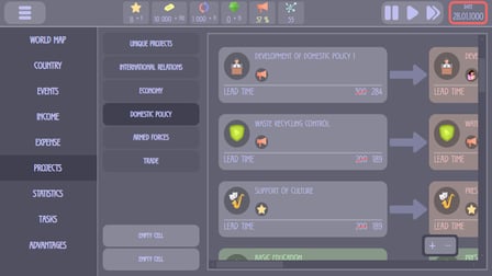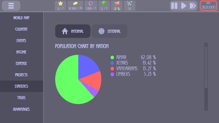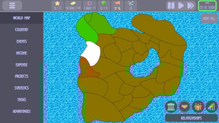Mevcut on seçenek arasından ülkenizi seçerek başlayın. Stratejinizi uygulamak istediğiniz siyasi rejime göre uyarlayın. Diğer ülkelerle barışçıl etkileşimler mi yoksa askeri çatışmalar mı sürdüreceğinize karar vererek, basit kontrolleri kullanarak çeşitli eylemlerde gezinin.